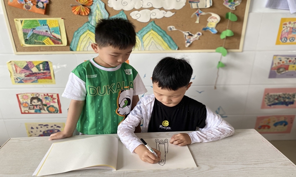 带着“神舟十四的宇航员是谁?”“神舟飞船是如何发射的?”困惑,孩子们进行了观看。原来本次飞行组人员分别是陈冬、刘洋和蔡旭哲,他们三位需要经历严格的培训才能入选,有着自强自立的载人航天精神。火箭腾空而起的时刻,孩子们惊叹不已,为祖国的航天科技感到自豪。基于对火箭的兴趣出发,孩子们在美工区开启了手工制作活动。大家分工合作,有的设计图纸,有的寻找材料,与同伴携手创建心中的航天梦。