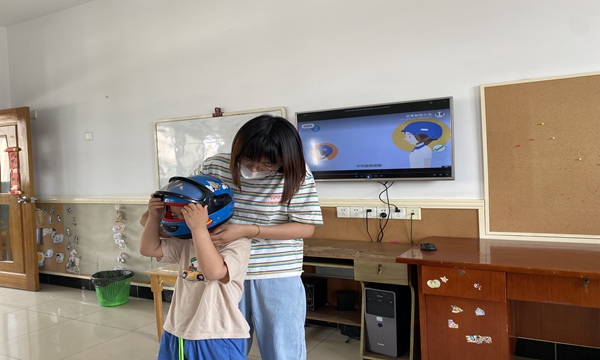 “清晨阳光天空照,妈妈送我去学校。骑车头盔要戴好,防护知识要记牢。放学回家最美好,快快乐乐蹦蹦跳,爸爸开车我坐好,安全约束要做到。”在愉快的歌曲声中,孩子们认识了“一盔一带”的重要性。接下来,教师用通俗易懂的语言,向孩子们讲解头盔的正确佩戴方法。最后,将交通安全、佩戴头盔融入到游戏中,规范孩子的交通安全行为。